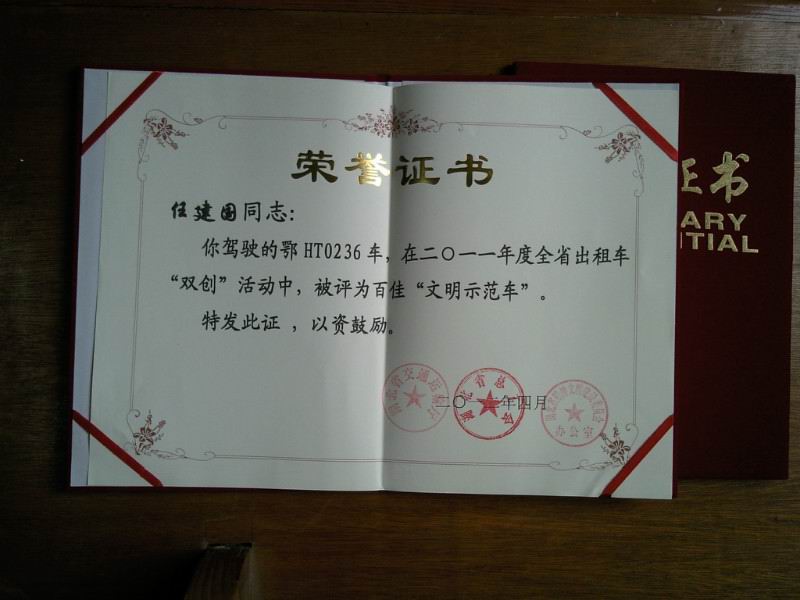 在創(chuàng)建和諧勞動關(guān)系活動中,荊門市公交出租汽車有限公司充分發(fā)揮和調(diào)動廣大駕駛員的勞動熱情和創(chuàng)造活力,獲得了一系列可喜成績。雷鋒車隊(duì)隊(duì)長曾凡華,2011年獲得省雙創(chuàng)“文明示范車”、荊門市出租行業(yè)“服務(wù)先鋒號”;2012年獲得荊門市“十佳的哥”榮譽(yù)稱號;前任隊(duì)長王建春獲得省交通廳“優(yōu)秀班組長”榮譽(yù)稱號;隊(duì)員任建國獲省交通廳“文明示范車”先進(jìn)個人稱號。2013年6月,公司雷鋒車隊(duì)獲“全國工人先鋒號”榮譽(yù)。2014年2月28日,公司鄂HT1223雷鋒車駕駛員張華維獲省精神文明建設(shè)委員會辦公室、省交通運(yùn)輸廳“雷鋒號”榮譽(yù)標(biāo)牌。雷鋒車隊(duì)先后涌現(xiàn)出一批優(yōu)秀駕駛員,分別獲得了荊門出租汽車行業(yè)“服務(wù)先鋒號”、“十佳的哥的姐”等稱號及“荊門市道德模范提名獎”、“荊門市見義勇為先進(jìn)集體”。