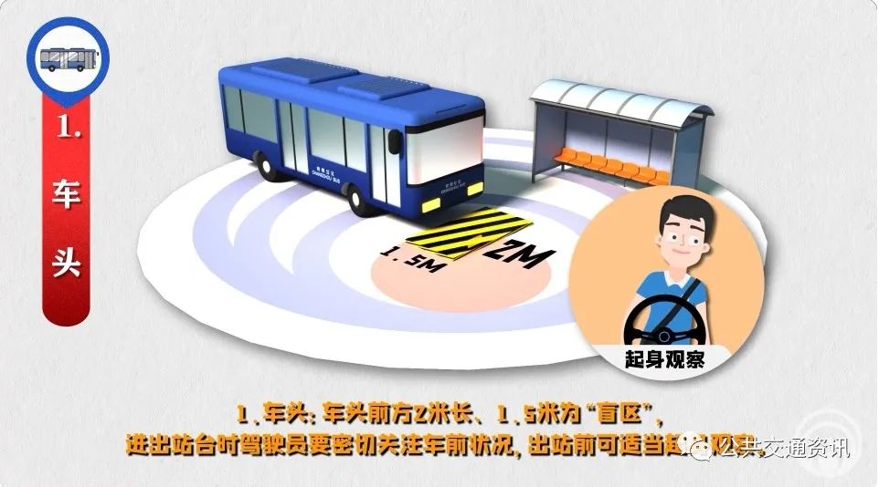 “盲區(qū)”是由于視線受到遮擋,駕駛員無法直接看到的車輛外部的區(qū)域。公交駕駛員運營時要防范各類“盲區(qū)”風險。