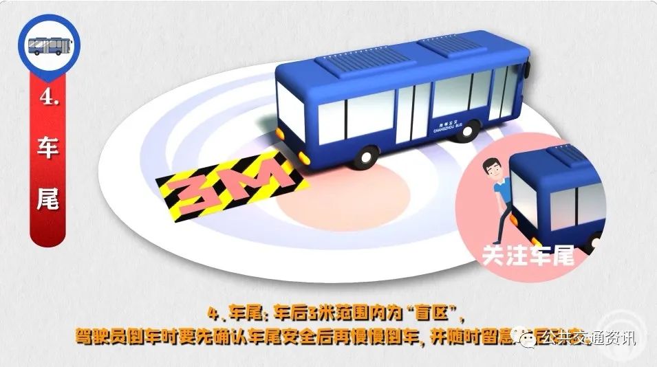 4、車尾:車后3米范圍內為“盲區(qū)”,駕駛員倒車時要先確認車尾安全后再慢慢倒車,并隨時留意車后動態(tài)。