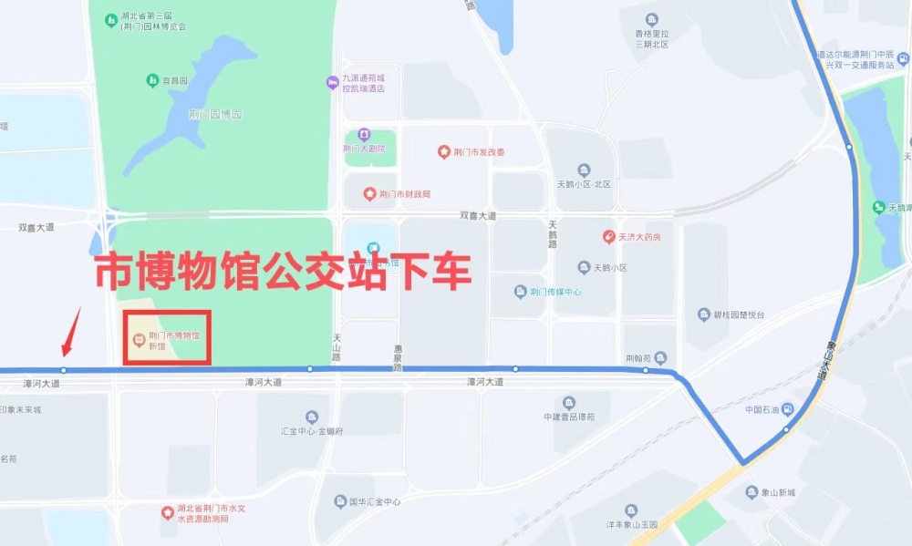 乘坐21路公交車(龍泉中學(xué)—漳河旅游碼頭)到漳河大道市博物館公交站點(diǎn)下車;21路線運(yùn)營(yíng)時(shí)間5:50-18:20,班次間隔20-25分鐘。