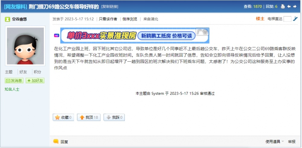 “太感謝了!為公交公司這種服務至上、辦實事的作風點贊!”