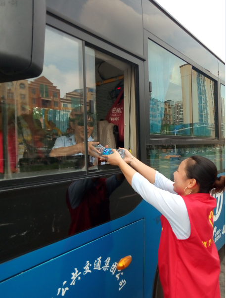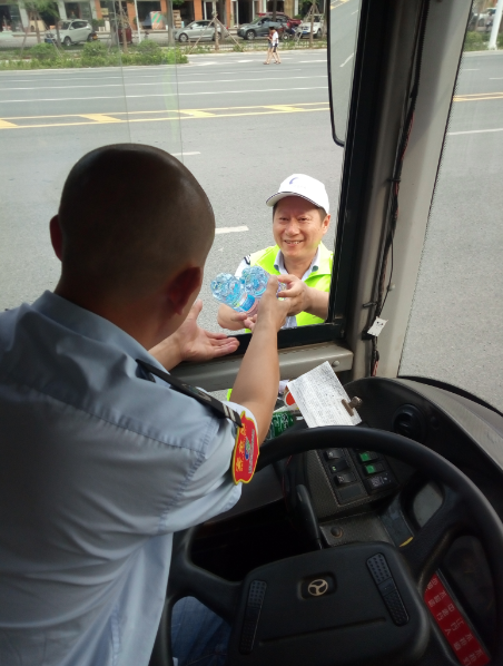 “目前還有小部分線路的公交車是沒有空調(diào)的,就算夏天再熱也得堅(jiān)持,現(xiàn)在天這么熱,一天下來衣服都不知道要濕多少次。今天有他們給我們送來的礦泉水,讓我們司機(jī)在這夏日里體會到了一絲清涼,真的很感謝他們。有了他們的支持和理解,我們更要做好本職工作?!惫患瘓F(tuán)工作人員說。