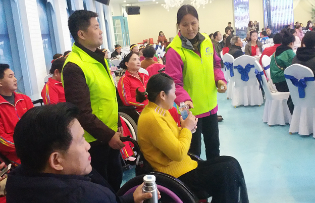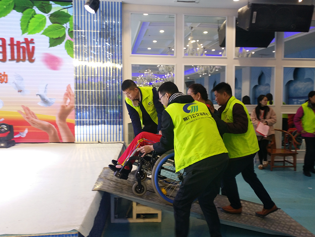 11月30日在荊門市殘疾人聯(lián)合會、荊門市智力殘疾人及親友協(xié)會、荊門市圓夢愛心幫扶會舉辦的主題為“包容殘疾人 創(chuàng)建文明城” 的“2018‘國際殘疾人日’紀(jì)念活動中,16名荊門公交志愿者在引導(dǎo)、簽到、幫助殘疾人出行、舞臺道劇、督導(dǎo)等志愿活動中,受到殘疾朋友們真誠的感謝和與會嘉賓、領(lǐng)導(dǎo)們的一致好評。