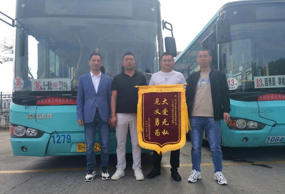 8月30日,市民彭先生帶著錦旗來到市公交集團(tuán)公汽二公司、公汽三公司,感謝58路、29路駕駛員吳雪嬌、趙金宇、楊陽在危急時(shí)刻伸出的援手。